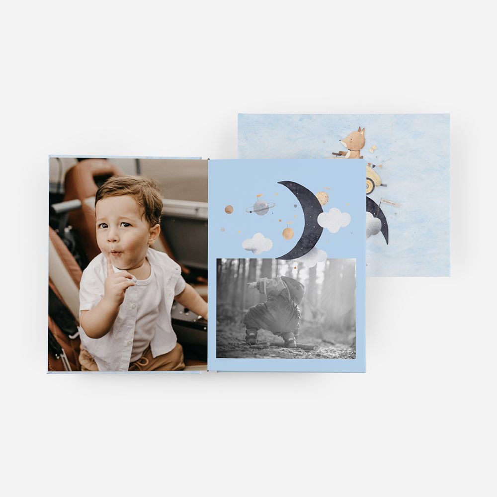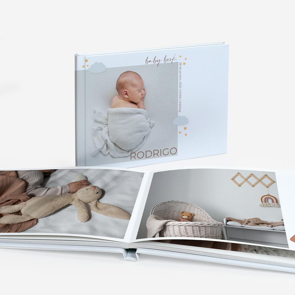 O álbum que cresce com os dias do teu bebé. Com espaço para as pequenas grandes memórias, do bolo ao abraço. Feito para quem quer lembrar, sem pressa, como tudo começou.