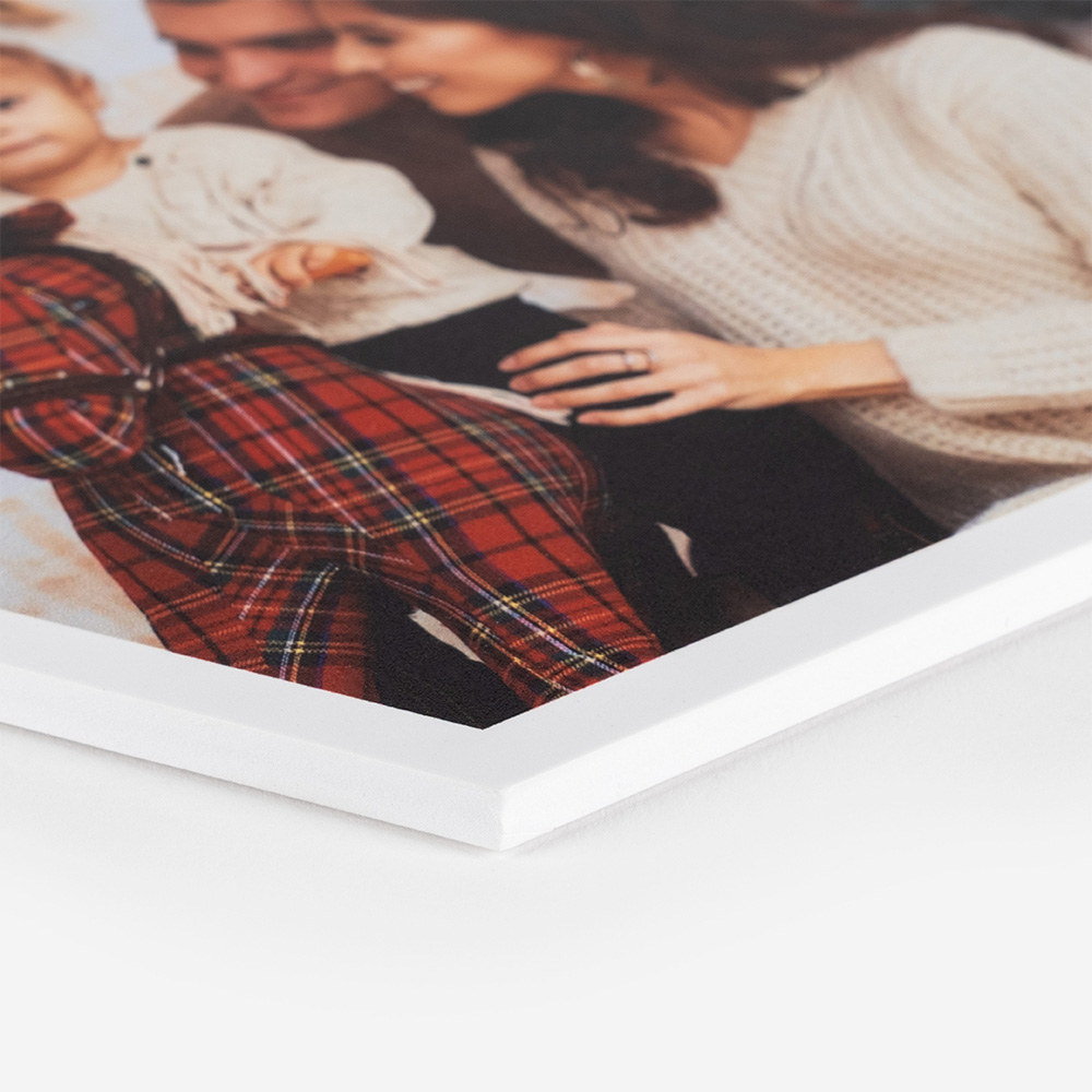 A janela do modelo Cameo é mais do que um detalhe, é uma declaração. A fotografia de 11 x 11 cm é impressa e cuidadosamente embutida na capa, fazendo parte da sua estrutura. Não é um encaixe para troca, mas sim a peça central e permanente do design do álbum. O tamanho da janela é o mesmo em todos os formatos, garantindo sempre o protagonismo da imagem.