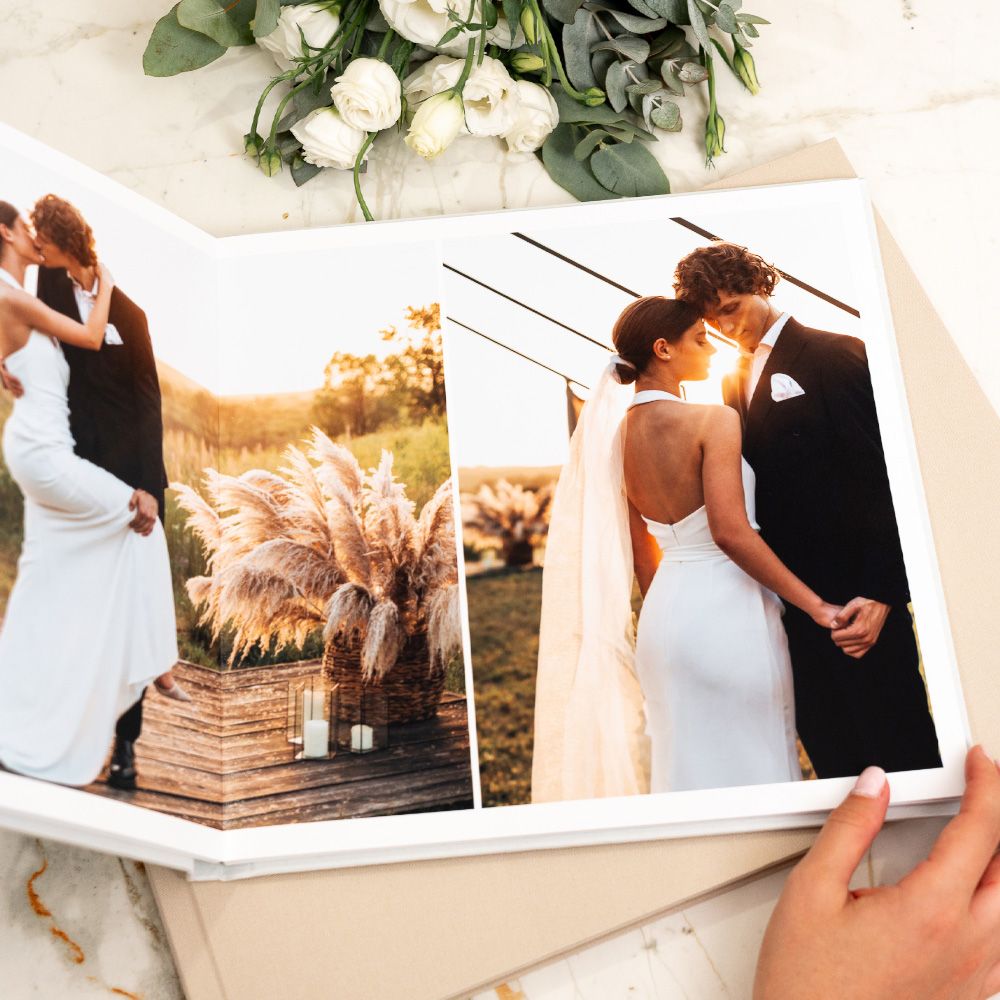 No modelo Cameo, a capa abre uma janela para a emoção. A tua fotografia favorita é integrada de forma permanente na capa em tecido, criando um leve relevo que a transforma no coração do álbum e num convite imediato para descobrir as memórias que guarda no interior.